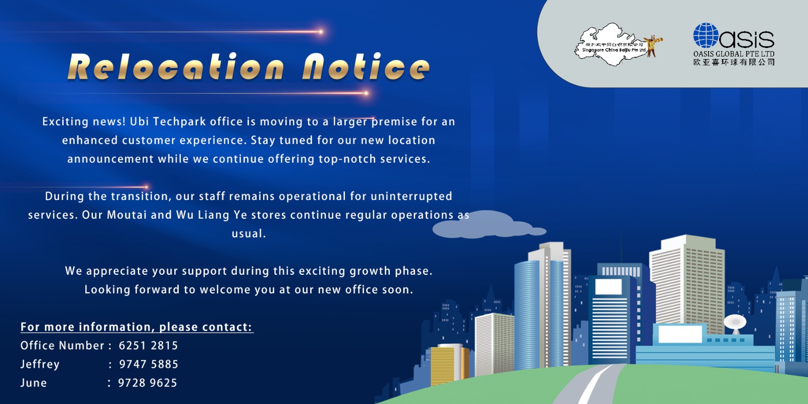 Relocation Notice – Singapore China Baijiu Pte Ltd